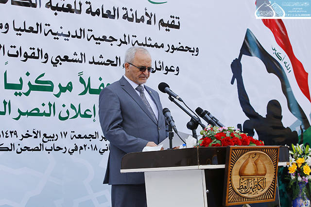 كلمة الأمانة العامة للعتبة الكاظمية المقدسة في حفل المركزي الذي شهدته رحاب الصحن الكاظمي الشريف بمناسبة إعلان النصر النهائي