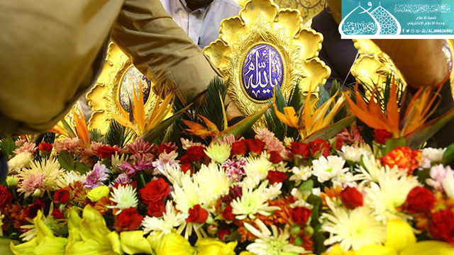 تيمناً بقدوم شهر شعبان المُعظم والذكرى المباركة لولادة الإمام الحسين وأخيه أبي الفضل العباس والإمام السجاد وأخيه علي الأكبر والحجة بن الحسن "عليهم السلام"، توشحَ مرقدي الإمامين الكاظمين "عليهما السلام" بأكاليل الزهور الطبيعية ذات الألوان المتناسقة، ومن أصناف ونوعيات فريدة وفاخرة قدّر عددها أكثر من (15000) زهرة، فضلاً عن نشر الكلمات النورانية في أعمدة وأواوين الطارمات ابتهاجاً بهذه المناسبة الميمونة.
