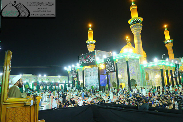 بمناسبة استشهاد وارث المتقين ابن الهداة الميامين الإمام محمد بن علي الجواد" عليه السلام"، ووسط توافد الجموع الموالية الزائرة إلى حرم الإمامين الجوادين "عليهما السلام" لإحياء هذه المصيبة الراتبة، أقيمت في رحاب الصحن الكاظمي الشريف مجالس العزاء والتأبين وفق المنهاج الذي أعدته الأمانة العامة للعتبة الكاظمية المقدسة للمدة من 26ـ 30 ذي العقدة 1439 هـ الموافق 9 ـ13/8/2018م، ويرتقي فيها المنبر الحسيني الشريف فضيلة الدكتور الشيخ علي الشكري، حيث استعرض في أولى محاضراته الدينية المآثر العظيمة للإمام الجواد منطلقاً من حديثه "عليه السلام" حين قال: ( لا تكن ولياً لله في العلانية، وعدوّا له في السرِّ).