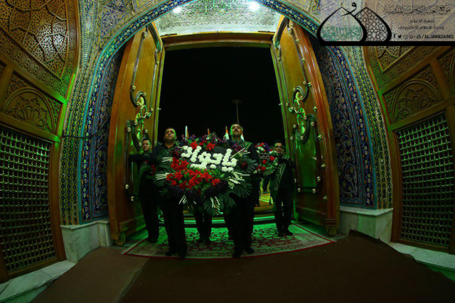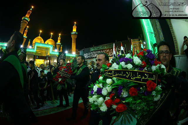 وسط أجواء يسودها الحزن والأسى وتضوع بالحب والولاء للنبي الأكرم محمد وأهل بيته الأطهار"عليهم السلام" وقفت الجموع الموالية في رحاب الصحن الكاظمي الشريف حداداً على المصيبة الراتبة التي أفجعت قلوب الموالين ألا وهي ذكرى استشهاد نور الهدى الإمام محمد بن علي الجواد "عليه السلام"، حيث أقامت الأمانة العامة للعتبة الكاظمية المقدسة المراسم السنوية لاستبدال الرايات الخضراء التي تعلو القبتين الشامختين للإمامين الجوادين "عليهما السلام" برايات العزاء والحزن السوداء، بحضور الأمين العام للعتبة الكاظمية المقدسة الأستاذ الدكتور جمال عبد الرسول الدباغ وأعضاء مجلس الإدارة وخدّام الإمامين الجوادين وممثلي خدّام العتبات المقدسة والمزارات الشريفة وممثلي دوائر ديوان الوقف الشيعي وعدد من القيادات الأمنية وشخصيات دينية واجتماعية وجمع غفير من الزائرين.