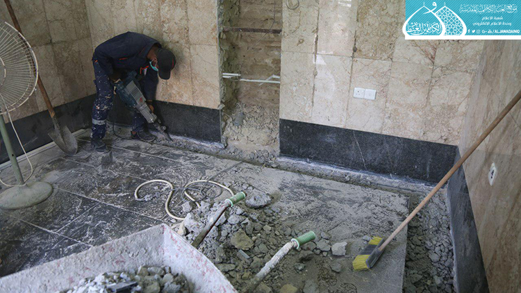 مشروع صيانة الغرف الداخلية في العتبة الكاظمية المقدسة يصل إلى نسبة (60%)