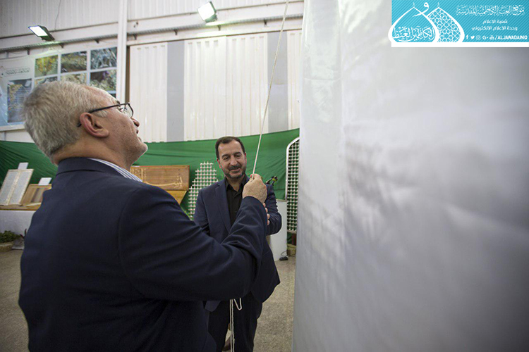 بعدها استمع الحضور إلى شرح تفصيلي أدلى بهِ مدير مصنع السقاء السيد ناظم الغرابي ليتحف الحضور عن تفاصيل صناعة الشباكين وطبيعة هذا الانجاز، فضلاً عن أنواع الزخارف والنقوش والخطوط المستخدمة بأيدي أمهر الخطاطين.