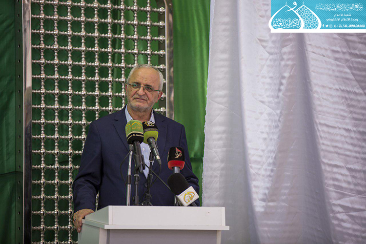 وشهدت هذه المناسبة المباركة إلقاء كلمة للأمين العام للعتبة الكاظمية المقدسة الأستاذ الدكتور جمال عبد الرسول الدباغ قائلاً: ( على بركة الله نلتقي في هذا المكان المبارك وهو مصنع السقّاء لإزاحة الستار عن شباكين موقعهما في العتبة الكاظمية المقدسة، نحمد الله تعالى على هذا التوفيق، وهو في الواقع توفيقان، الأول لخدم الإمامين الجوادين "عليهما السلام" إذ أنهم أدوا بعض ما عليهم تجاه المكان الذي يعملون فيه، والثاني لخَدَمةِ ابي الفضل العباس "عليه السلام"على ما أبدعوه في صناعة هذه الشباكين.