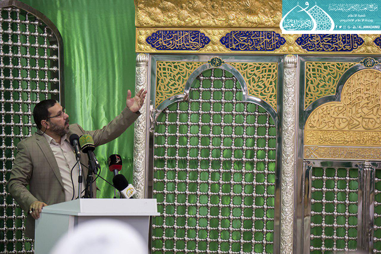 كما شهد الحفل إلقاء أبيات شعرية لخادم العتبة العباسية الشاعر علي الصفار الذي أرّخ هذه المناسبة قائلاً: