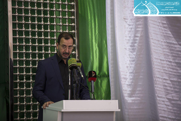 وشهدت هذه المناسبة المباركة إلقاء كلمة للأمين العام للعتبة الكاظمية المقدسة الأستاذ الدكتور جمال عبد الرسول الدباغ قائلاً: ( على بركة الله نلتقي في هذا المكان المبارك وهو مصنع السقّاء لإزاحة الستار عن شباكين موقعهما في العتبة الكاظمية المقدسة، نحمد الله تعالى على هذا التوفيق، وهو في الواقع توفيقان، الأول لخدم الإمامين الجوادين "عليهما السلام" إذ أنهم أدوا بعض ما عليهم تجاه المكان الذي يعملون فيه، والثاني لخَدَمةِ ابي الفضل العباس "عليه السلام"على ما أبدعوه في صناعة هذه الشباكين.