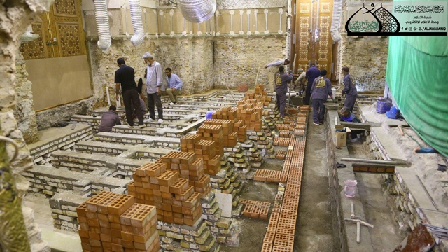 وأضاف: ان عملية فتح القنوات والممرات الهوائية كانت بهدف منع حدوث الرطوبة مستقبلاً للحفاظ على جدران الحرم المطهر، وبعد هذه المرحلة تم نصب قالب من الصفيح المغلون قبل وضع شبكة التسليح وصب الأرضية لنصل بهذه الجهود إلى نسبة (50%) من انجاز المرحلة الأولى، وتتواصل الجهود في البدء بأعمال الجهة الجنوبية للحرم الشريف ضمن التوقيتات الزمنية والمواصفات التصميمية والتنفيذية للمشروع.