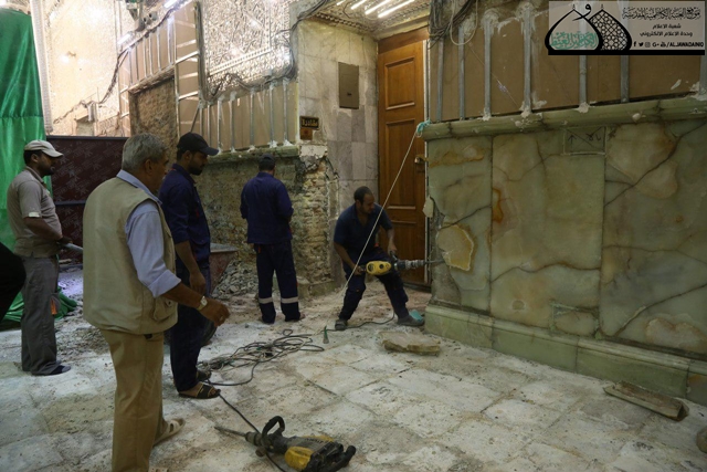 بوتيرةٍ متصاعدة وهمّة عالية مستمَدة من منبعَيْ الجود والعطاء، الإمامين الكاظمين "عليهما السلام" تواصل ملاكات قسم الشؤون الهندسية جهودها وبمستوياتٍ متقدّمة في أعمال مشروع إعادة تأهيل وإكساء الحرم الكاظمي الشريف.