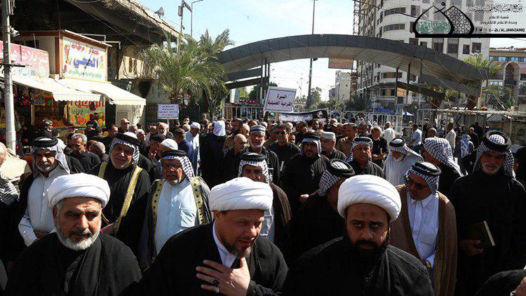 وتوجّه المعزّون المشاركون في المسيرة صوب الصحن الكاظمي الشريف انطلاقاً من الشارع المقابل لباب المراد، حيث صدحت حناجرهم بهتافات وشعارات الولاء والعزاء القرآنية الحسينية التي قطعت العهد للإمام سيد الشهداء (عليه السلام) بالمضي على نهجه الرسالي القرآني العظيم، وقدَّمت أحرَّ آيات العزاء والمواساة للإمامين الكاظمين (عليهما السلام)، كما أكد المعزّون الذين تشرّفوا بالمشاركة في إحياء هذه الشعائر المقدسة على تمسّكهم بنهج القرآن العظيم الذي جسَّده سيد الشهداء في يوم عاشوراء بأروع صوره، ودعوا إلى مواصلة هذه المسيرات التي تعكس الوعي القرآني وتطبيقه على الواقع الذي يعيشه المجتمع من جانب، وإحياء الذكر العطر لأهل البيت (عليهم السلام) العِدل المبارك للقرآن الكريم من جانب آخر.
