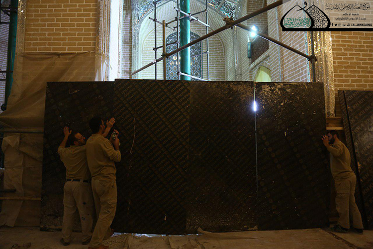 تأهّبت فرق وحدة النجارة والألمنيوم التابعة إلى شعبة الميكانيك بتنفيذ مجموعة من الأعمال الخدمية والفنية في الصحن الكاظمي الشريف ومنها نصب القواطع الخشبية للحفاظ على انسيابية الدخول والخروج، فضلاً عن تخفيف الزخم المتوقع حصوله خلال ساعات ذروة الزيارة داخل الحرم الشريف، في الوقت الذي تسعى فيه الأمانة العامة للعتبة الكاظمية المقدسة من خلال هذه الجهود المتواصلة إلى تقديم الخدمات المتنوعة للوافدين المتواجدين في مدينة الكاظمية المقدسة لينعموا بالراحة والطمأنية لإكمال مراسم الزيارة عند الإمامين الجوادين "عليهما السلام" على أكمل وأتم وجه.