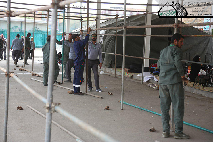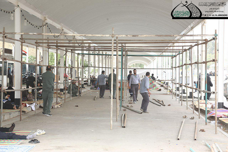 نظراً لتزايد أعداد الوافدين لموسم الأربعين هذا العام، قامت الملاكات الخدمية والفنية في العتبة الكاظمية المقدسة بتأهيل وتنظيم مسقفات شارع صاحب الزمان "عجل الله فرجه الشريف" ذات المساحة الكبيرة والطاقة الاستيعابية العالية، وتهيئة المنشآت الصحية والمستلزمات الخدمية كافة، لتأمين إيواء واستراحة الزائرين الكرام الوافدين من داخل العراق وخارجه.