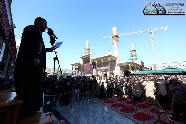حظيت زيارة أربعينية أبي الأحرار الإمام الحسين "عليه السلام" بالفضل والمقام الجليل فمن خلالها صدحت أصوات العشق والمودة والولاء، وأشتاقت المُقل لتنثر الدموع لعودة قافلة السبيّ الزينبي التي تعرّضت لعظيم المحّن بعد فاجعة الطفّ الأليمة، فهي السرّ الذي يدفع بالنفوس على اختلافها أجناسها وتنوعها للتفاعل معها والمواظبة على إحيائها، إذ شهدت العتبة الكاظمية المقدسة صباح العشرين من شهر صفر المظفر 1440هـ الموافق 30 تشرين الأول 2018م مجلساً عزائياً خاصاً في يوم الأربعين الذي درجت على إقامته في كلّ عام، حيث استمعت الحشود المعزّية التي توافدت إلى رحاب الصحن الكاظمي الشريف إلى تسجيل بصوت المرحوم الشيخ عبد الزهراء الكعبي وقراءته للقصة الكاملة لمسيرة الركب الزينبي عند عودته إلى كربلاء المقدسة، وما جرى على السيدة الحوراء زينب وبقية حرم رسول الله "عليهم السلام" من أحداث مروعة في رحلة الشقاء والسبيّ والضيم والمصائب العظيمة التي رافقها وصاحبها فيها الإمام علي بن الحسين زين العابدين "عليه السلام" متحملاً المسؤولية ذاتها لإعلاء كلمة الحقّ ونبذ الباطل بكلّ أشكاله وصوره على أيدي الظالمين الذين لم يراعوا فيه حرمة للبيت العلوي الطاهر.