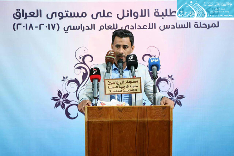 حضر وفد العتبة الكاظمية المقدسة الذي ترأسه نائب أمينها العام فضيلة الشيخ عدي الكاظمي مهرجان العقول السنوي لتكريم الطلبة الأوائل على مستوى العراق في مرحلة السادس الإعدادي للعام الدراسي 2017 ـ 2018 م، الذي أقامه مسجد آل ياسين في مدينة الكاظمية المقدسة، تزامناً مع ذكرى الولادتين المباركتين لسيد الكائنات النبي محمد "صلّى الله عليه وآله وسلم"، وحفيده الإمام جعفر الصادق "عليه السلام"، احتفاءً بهذه النُخبة، بحضور ممثل المرجعية الدينية في مدينة الكاظمية المقدسة سماحة الشيخ حسين آل ياسين، وعدد من الشخصيات الدينية والعلمية والأكاديمية والمتفوقين وذويهم.