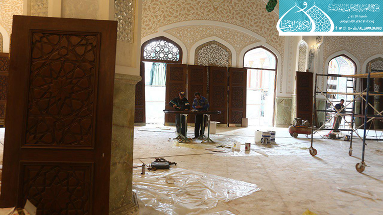 مشروع مسقف الصحن الكاظمي الشريف يشهد نصب الأبواب الخشبية وأعمال الانهاءات