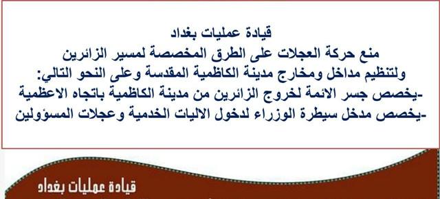 تعرّف على بطاقة الوعي الأمني التي أصدرتها قيادة عمليات بغداد الخاصة لمناسبة زيارة استشهاد الإمام موسى الكاظم "عليه السلام"