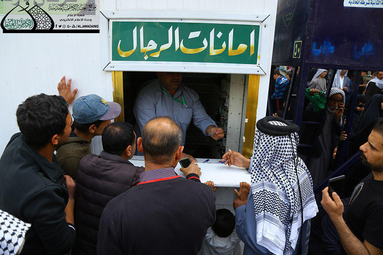 شرع قسم خدمة الزائرين في العتبة الكاظمية المقدسة كعادته في كلّ عام بإعداد خطة خدمية جديدة لتحقيق انسيابية عالية في تأدية المهام وتوفير أقصى درجات الراحة للزائرين الوافدين إلى الصحن الكاظمي الشريف لإحياء ذكرى استشهاد الإمام الزاهد العابد موسى بن جعفر "عليه السلام"، وعن طبيعة تلك الجهود تحدّث السيد احسان جواد كاظم رئيس قسم خدمة الزائرين قائلاً: عقدت وحدات قسم خدمة الزائرين العزم على أداء مهامها حيث عملت وحدة الأمانات والمفقودات في تهيئة المخيمات بمساحات كبيرة في شارعَيْ أمير المؤمنين وصاحب الزمان "عليهما السلام" المخصصة لتسلم حقائب الوافدين وحاجياتهم، فضلاً عن تهيئة وتأهيل محطات تسلم أجهزة الهاتف النقال المتواجدة في جميع مداخل العتبة المقدسة.