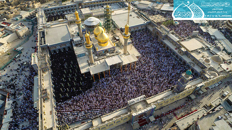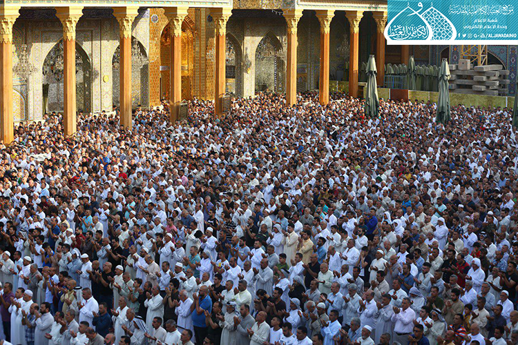 وابتهل المصلون إلى العليّ القدير بالدعاء بتعجيل فرج مولانا صاحب العصر والزمان الإمام المهدي المنتظر "عجل الله فرجه الشريف" وأن يحفظ مرجعيتنا العُليا المتمثلة بسماحة آية الله العظمى السيد علي الحسيني السيستاني "دام ظله الوارف"، وأن يحفظ العراقيين بكلّ طوائفهم ومكوناتهم ويظلّلهم بظلال الرحمة ويجنّبهم كلّ مكروه ويَعم الأمن والأمان على بلدنا العزيز، وأن يجعل هذا اليوم العظيم مناسبة للتطلّع لمستقبل واعد ينتظره عراقنا العزيز لبلوغ الغاية المنشودة وهي الإصلاح والإستقامة بإذن الله تعالى، وأن يكلّل جهود قواتنا الأمنية والحشد الشعبي بالنصر والظفر ويرد كيد الكائدين.