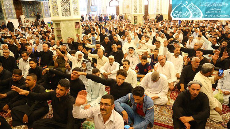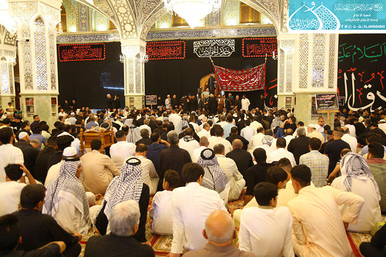 توافدت الحشود المؤمنة والمواكب الحسينية من أرض الغَريّ مدينة أمير المؤمنين الإمام عليّ بن ابي طالب "عليه السلام"، من محافظة النجف الأشرف لإحياء ذكرى استشهاد خازن عِلم الرسول, وسادس الأئمة الهداة الإمام جعفر بن محمد الصادق"عليه السلام", حيث رفعوا رايات الحزن والعزاء، وصَدحت حناجرهم بعبارات الأسى بهذه الذكرى الأليمة إلى الإمامين الكاظمين "عليهما السلام" وأقاموا مجالس العزاء والتأبين في رواق عبد الله بن عبد المطلب "عليه السلام" في الصحن الشريف، مُستَذكرين إمامهم "عليه السلام"، ومسيرة تلك المدرسة الرسالية المحمدية التي حفظت لنا أصالة الإسلام ونقاءه.