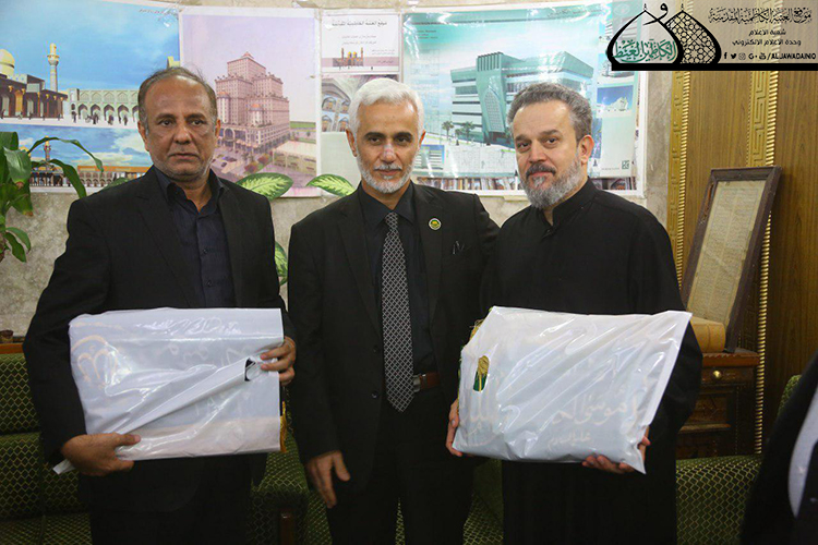 وفي ختام اللقاء أهدى السيد الأمين العام للعتبة الكاظمية المقدسة إلى الحاج باسم الكربلائي والشاعر الحسيني ناظم الحاشي الراية الشريفة للإمامين الجوادين "عليهما السلام"، متمنياً لهما المزيد من التوفيق في مجال الخدمة الحسينية المباركة.