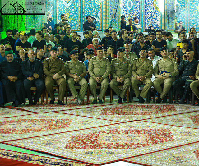 وأضاف: أن من عزم سيد الثائرين وقبلة المجاهدين استُمدّت فتوى الدفاع الكفائي لتكون المرجعية الدينية العُليا على خطى الحسين في نصرة الدين والدفاع عن الإسلام المحمدي الأصيل فثورته "عليه السلام" كانت في سبيل الله، وفتوى المرجعية الرشيدة كانت من أجل بقاء كلمة الله هي العُليا وحفظ الدين من الزيغ والانحراف .. نعم تكرر المشهد وتغير الأشخاص فسقط الشهداء يوم الطف لتزفهم الملائكة إلى جنات الخلد، وفي زماننا هذا أيضاً ما زالت مواكب الشهداء يُزَفون إلى جنات الفردوس العاليات مع الحسين .. كان أبوه أمير المؤمنين فالحسين أمير الشهداء يقودهم إلى مقعد صدق عند مليك مقتدر، كلما شاهدنا طفلة يتيمة تجلت أمامنا رقية وانكسارها .. وكلما مر علينا طفل يتيم استذكرنا يتامى الحسين وآل عقيل والنساء الثكالى من بني هاشم، فتصرفنا إزاء يتامى الحشد الشعبي والقوات الأمنية يجب أن يكون بمستوى تصرفنا أزاء يتامى وسبايا عاشوراء من التقديس والاحترام والدفاع عنهم .. فتحية محمدية علوية حسينية لحشدنا الشعبي وشهدائهم، وأيتامهم .. نقف أمام تضحياتهم بإجلال وإكبار لأنهم كانوا كأصحاب الحسين ليس للدنيا حساب ومنزلة عندهم وان طريقهم ينتهي بالشهادة لا بمنصب وجائزة .. أبناء الحشد تركوا الدينا وزبرجها وزخرفها للدفاع عن المقدسات همهم الأول والأخير أن يقفوا في ذلك الطابور الطويل في قافلة سيد الشهداء الإمام الحسين "عليه السلام").