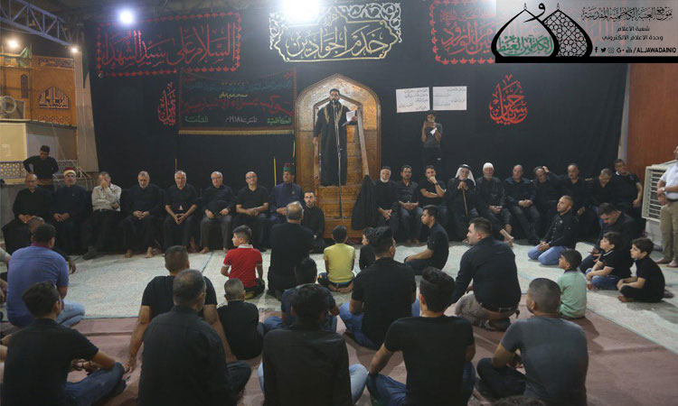انطلاقا من قول رسول الله "صلى الله عليه وآله وسلم":( إنّ لقتل الحسين حرارة في قلوب المؤمنين لا تبرد أبداً ).. إستقبلت رحاب الصحن الكاظمي الشريف المواكب الحسينية المعزية بذكرى عاشوراء، حيث تجسدت فيها أروع صور الولاء لأهل بيت النبوة "عليهم السلام" وهي تؤدي الشعائر الحسينية، إذ صدحت حناجرالمعزين بعبارات الحزن والأسى وهم يحيون أيام الذكرى الأليمة لاستشهاد أبي الأحرار الإمام الحسين "عليه السلام"، وكان في استقبالهم جمع من خدّام الإمامين الجوادين "عليهما السلام"، لتختتم تلك الشعائر الحسينية بمجلس للعزاء في موكب خدم الإمامين الجوادين "عليهما السلام" في الصحن الشريف من جهة باب المراد، مستذكرين خلاله فاجعة الطف ومأساة كربلاء الخالدة ومواقفها وأحداثها وكلّ ما تعرضت إليه عيالات رسول الله "صلى الله عليه وآله" من مشاهد مروعة يندى لها جبين الإنسانية.