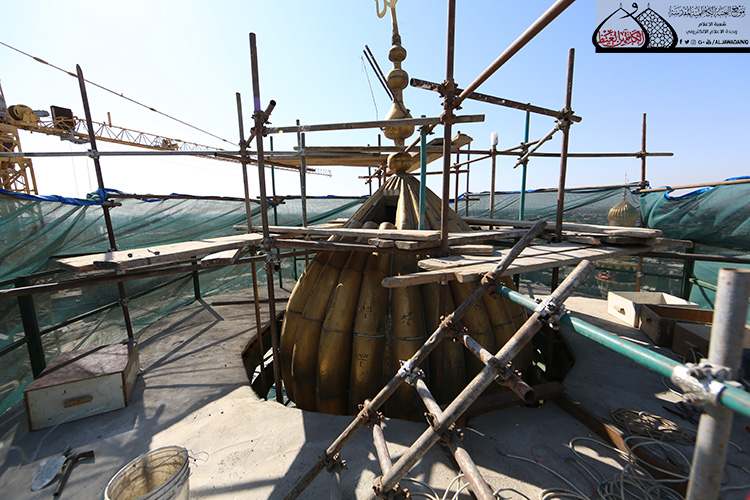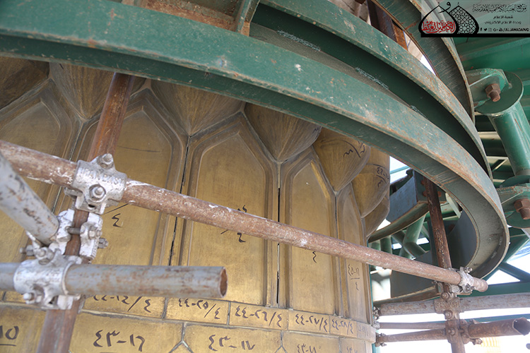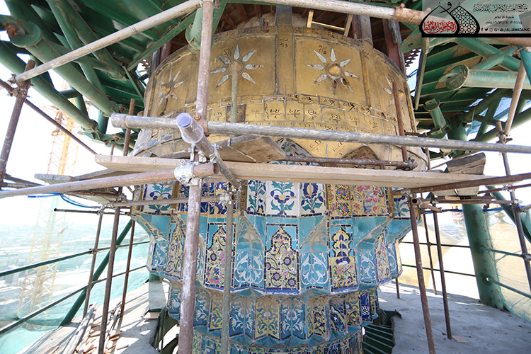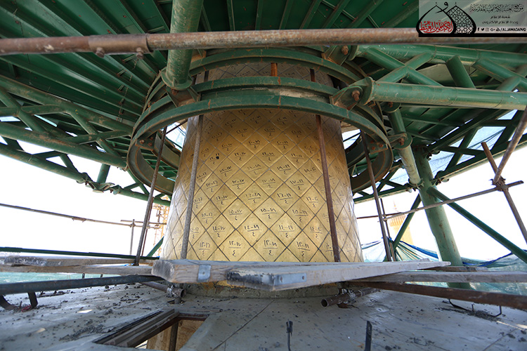 المنارة الشمالية الشرقية في الصحن الكاظمي الشريف تشهد أعمال الإكساء والتذهيب
