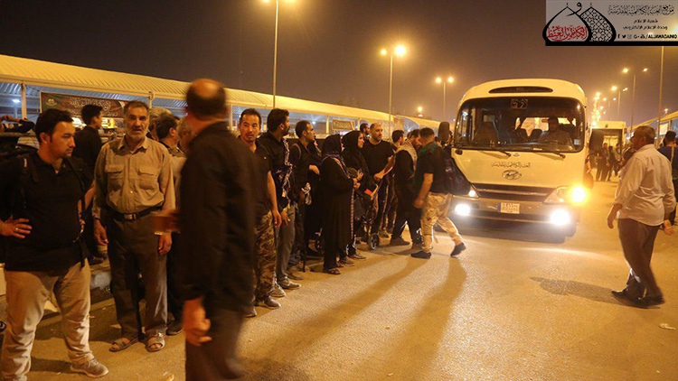 فيما يخص النقل تم تهيئة أكثر من (30) باص عملت على نقل الزائرين إلى أماكن المبيت داخل المدينة المقدسة، واستنفار أكثر (45) حافلة لنقل الزائرين بعد إنهاء زيارتهم إلى المنافذ الحدودية.