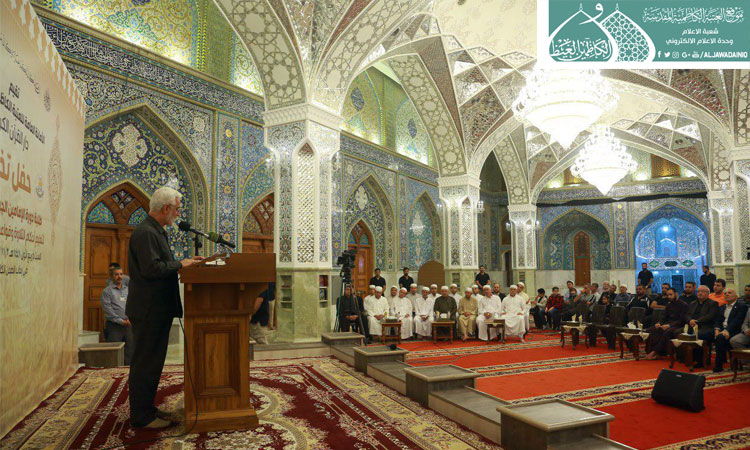 ولأنكم تعلمتم تلاوة القرآن وهو الثقل الأول، ودرستم أحكام تجويده في بيوت أذن الله أن ترفع ويذكر فيها اسمه في رحاب أهل البيت "عليهم السلام" ومن جوار الإمامين الكاظمين الجوادين "عليهما السلام" وهو الثقل الثاني فهنيئاً لكم ولعوائلكم ولأساتذتكم ولنا بكم عندما يشملكم حديث رسول الله "صلّى الله عليه وآله وسلّم" حين قال: (وَمَا اجْتَمَعَ قَوْمٌ فِى بَيْتٍ مِنْ بُيُوتِ اللَّهِ يَتْلُونَ كِتَابَ اللَّهِ وَيَتَدَارَسُونَهُ بَيْنَهُمْ إِلاَّ نَزَلَتْ عَلَيْهِمُ السَّكِينَةُ وَغَشِيَتْهُمُ الرَّحْمَةُ وَحَفَّتْهُمُ الْمَلاَئِكَةُ وَذَكَرَهُمُ اللَّهُ فِيمَنْ عِنْدَهُ)