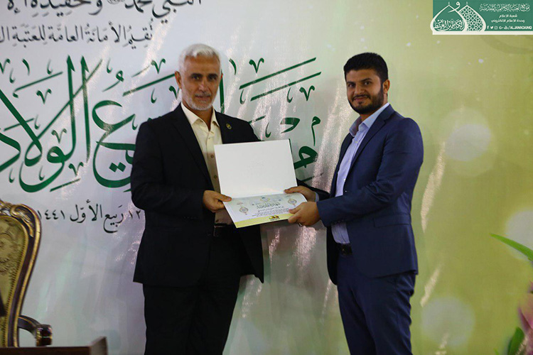 واختتمت الأمسية الأولى من المهرجان بتوزيع الشهادات التقديرية والراية المباركة لقبتي الإمامين الكاظمين الجوادين "عليهما السلام" على القراء المشاركين، وقراءة سورة الفاتحة المباركة ترحماً على أروح شهدائنا الأبرار.