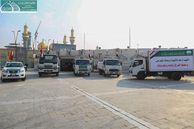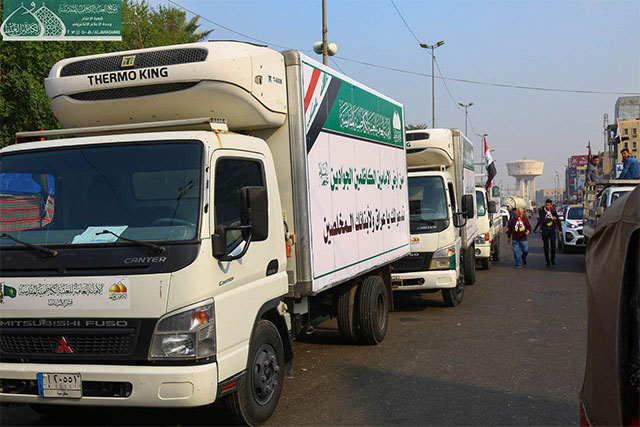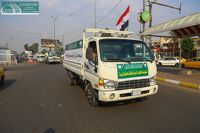 الأمانة العامة للعتبة الكاظمية المقدسة تواصل إرسالها قوافل الدعم اللوجستي إلى المتظاهرين السلميين من ابناء العراق