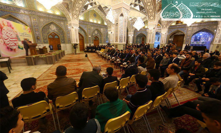 واحتراماً لمشاعر العوائل المفجوعة بأبنائها وترحماً على أروح الشهداء ارتأينا أن نقيم اليوم محفلاً قرآنياً بعيداً عن مظاهر الفرح والسرور فتغمد الله شهداءنا برحمته الواسعة وعافى جرحانا .. كما يُطيب لنا أن نوجّه كلمة طيبة لأبنائنا وبناتنا الفائزين بمسابقة ربيع الولادة لحفظ أربعين حديثاً للنبي الأعظم محمد "صلّى الله عليه وآله وسلّم" الذي قال: ( ياعلي مَن حفَظ من أُمتي أربَعين حديثاً يطلُبُ بذلك وَجه الله والدار الآخرة حشرهُ الله يوم القيامة مَعَ النَبيينَ والصديقينَ والشُهداءِ والصالحِينَ وَحَسُن أولئكَ رَفيقاً )، فهنيئاً لكم هذا الفوز وهذا التكريم وأذكّركم أن أهم من هذا الفوز هو تطبيق ما حفظتموه من تلك الأحاديث في حياتكم اليومية لتكون شعاركم وخارطة طريق لسلوككم وهذا هو الفوز الأهم ..)