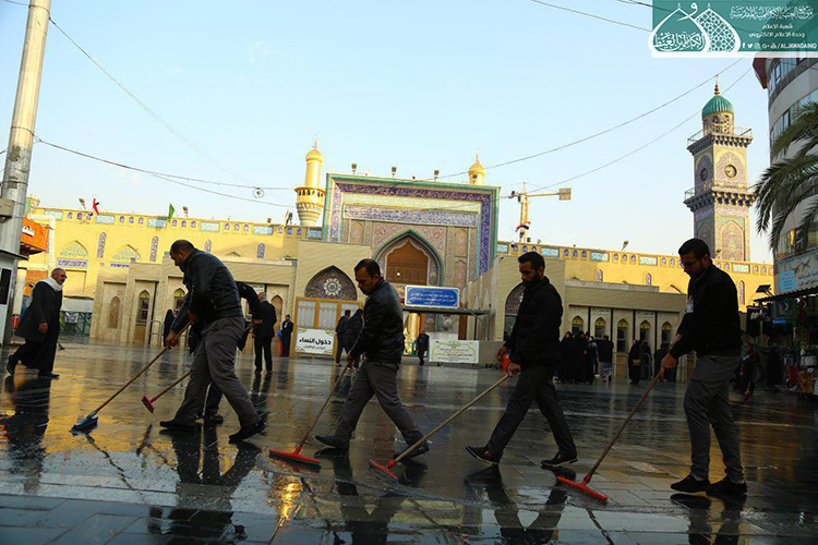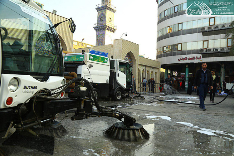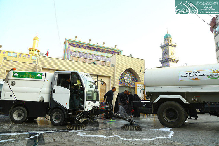 لأجل توفير الخدمات اللازمة للزائرين الكرام والحفاظ على مظهر ورونق وجمالية شوارع مدينة الكاظمية المقدسة وخلق بيئة صحية، وبتوجيه من قبل الأمانة العامة للعتبة الكاظمية المقدسة متمثلة بأمينها العام الأستاذ الدكتور حيدر حسن الشمّري وحرصه على إظهار مدينة الكاظمية المقدسة بكلّ ما يُليق بمكانتها الحضارية والدينية، أطلقت ملاكات شعبة النظافة في العتبة المقدسة حملة التنظيف الأسبوعية لشارعي باب القبلة و باب المراد والمنطقة المحيطة بالصحن الكاظمي الشريف ، حيث شملت تلك الجهود أعمال عدّة منها رفع أكداس النفايات وتفريغها في الحاويات المخصصة فضلاً عن غسل الطرق والشوارع المؤدية للحرم الكاظمي الشريف ويتم ذلك من خلال التعاون والتنسيق مع قسم الآليات في العتبة المقدسة لتوفير العجلات الخدمية والحوضية.