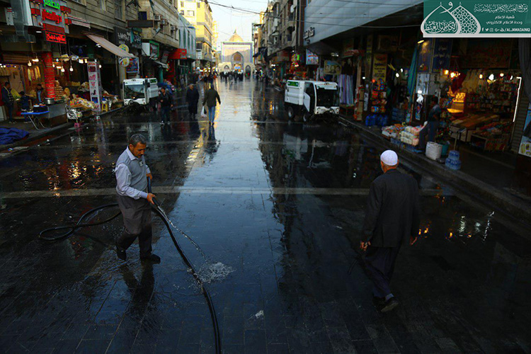 الأمانة العامة للعتبة الكاظمية المقدسة تطلق حملة تنظيف الشوارع المحيطة بالصحن الكاظمي الشريف