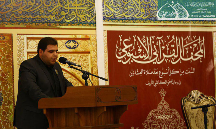 انطلاقاً من قول رسول الله " صلّى الله عليه وآله وسلّم": ( من كان القرآن حديثه، والمسجد بيته بنى الله لهُ بيتا في الجنة )، وفي إطار سعي الأمانة العامة للعتبة الكاظمية المقدسة بتفعيل التواصل القرآني وخدمة كتاب الله العزيز، والإسهام في نشر الثقافة القرآنية، تعطّرت أجواء الصحن الكاظمي الشريف بالنفحات الإيمانية والقدسية وزودت جموع المؤمنين من زائري الإمامين الجوادين "عليهما السلام" ببركات الذكر الحكيم من خلال إقامة المحفل القرآني الأسبوعي بحضور الأمين العام للعتبة الكاظمية المقدسة الأستاذ الدكتور حيدر حسن الشمّري وعدد من أعضاء مجلس الإدارة الموقّر، ونخبة من الأساتذة المهتمين بالشأن القرآني، وجمع من زائري الإمامين الكاظمين "عليهما السلام".