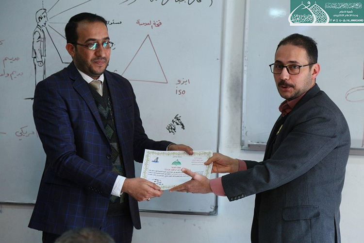 واختتمت الورشة بتوزيع شهادات مشاركة، وتقديم درعاً تذكارياً إلى الأمانة العامة للعتبة الكاظمية المقدسة، وذلك تقديراً لجهودها المباركة ورعايتها لهذه الورشة التخصصية والتي عكست خلالها مدى اهتمامها وتواصلها مع المؤسسات الحكومية في تنفيذ برامجها التدريبية وفق أساليب علمية وعملية والتي من شأنها أن تُسهم في تطوير عمليات الأداء الوظيفي.