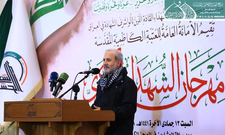 إنّ مسيرة المجاهدين ليس لها إلا أن تتوّج بإحدى الحُسنيين إما نصر أو شهادة، وما الشهادة إلا حياةُ النصر، والشهادة هي عهد الأولياء وميثاق الأوصياء .. بل وأقصر الطرق إلى معارج الإنسانية وهي التي يثبتُ فيها الشهيدُ حياتهُ، فهو حيُّ عند اللهِ يُرزق وعند الناس مكرّمٌ، ولمناسبة ذكرى أربعينية القادة الشهداء السعداء الأفذاذ الذين نالوا شرف الشهادة والجهاد وفي طليعتهم القائد المجاهد الشهيد أبو مهدي المهندس "طيب الله ثراه" والثلة المؤمنة الذين وهبوا أنفسهم في سبيل الحقّ، أقامت العتبة الكاظمية المقدسة وبرعاية كريمة من قبل أمينها العام الأستاذ الدكتور حيدر حسن الشمّري مهرجان الشهداء المركزي، تحت شعار: (شهداؤنا أبطال معارك الانتصار والتحرير .. عزّنا وفخرنا وقدوتنا )، بحضور أعضاء مجلس الإدارة وعدد من الشخصيات الاجتماعية والدينية، ونخبة من القيادات الأمنية، وكوكبة من جرحى القوات الأمنية، ومجموعة من الوجهاء وشيوخ العشائر.