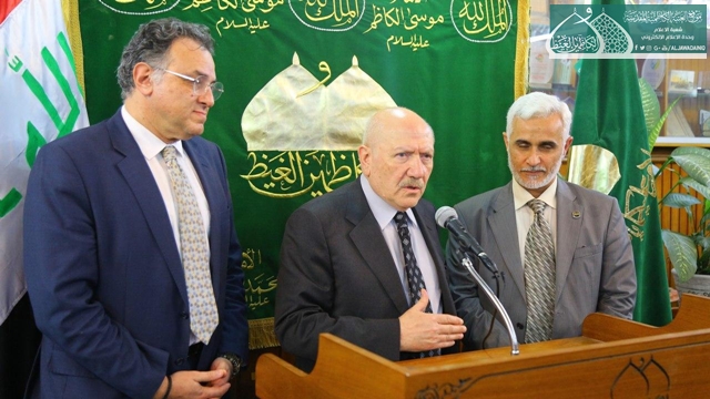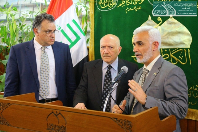 من جانبه تحدث الأمين العام للعتبة الكاظمية المقدسة قائلاً: العالم يمر بأزمة صحية من تفشي وانتشار فيروس "كورونا" وإعلانه من قبل منظمة الصحة العالمية (WHO) وباءً عالمياً، الأمر يتطلب وقفة جدية من أبناء الشعب العراقي، ودليل هذه الوقفة زيارة السيد وزير الصحة والبيئة، ومدير مكتب منظمة الصحة العالمية في بغداد، وتدارس تفاصيل الأزمة والأمكانيات المتاحة وكذلك الواجب توافرها من قبل الجهات المعنية. وأعلن أن هذا الموقف هو مسؤولية الجميع ومن هنا أدعو الرئاسات الثلاث: رئاسة الجمهورية، ورئاسة مجلس الوزراء، ورئاسة مجلس النواب لدعم وزارة الصحة والبيئة مادياً ومعنوياً ليتسنى لها القيام بواجباتها.