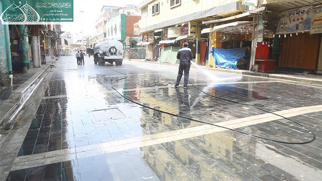 استعداداً لشهر رمضان المبارك العتبة الكاظمية المقدسة تُطلق حملة الإدامة لتنظيف الشوارع المحيطة بالصحن الكاظمي الشريف