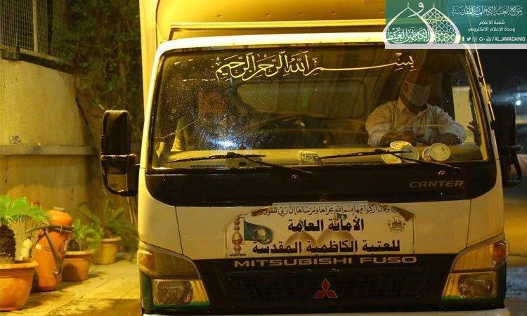 الأمانة العامة للعتبة الكاظمية المقدسة تواصل مدّ يد العون للعوائل المتضررة جرّاء الحظر الصحي من خلال حملة " جود الجوادين"