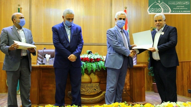 احتفى الأمين العام للعتبة الكاظمية المقدسة الأستاذ الدكتور حيدر حسن الشمّري بحضور أعضاء مجلس الإدارة بقرّاء العتبة المقدسة من خلال دعوتهم لمأدبة الأفطار وتكريمهم تعبيراً عن شكره بجهودهم الطيبة مع رحيل شهر رمضان المبارك شهر ربيع القرآن والفضل والإنعام، الذي كان للمؤمنين روضة وأنساً وللغافلين قيداً وحبساً، المشاركين في الختمة القرآنية المرتلة التي استمرت على مدى الشهر الكريم بواقع جزء واحد في كلّ يوم والتي أهدي ثوابها لشهداء العراق، فضلاً عن إحيائهم لليالي القدر المباركة وقراءة الأدعية المخصوصة لأعمال الشهر الفضيل.