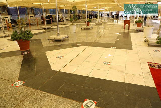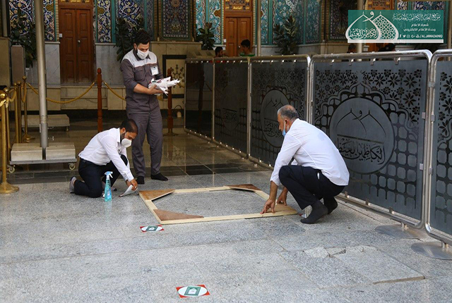 من أجل الحفاظ على صحة وسلامة الزائرين الكرام القاصدين حرم الإمامين الكاظمين الجوادين "عليهما السلام" ولدرء مخاطر الإصابة بوباء كورونا المستجد (COVID -19)، أطلقت العتبة الكاظمية المقدسة وبتوجيه من أمينها العام الأستاذ الدكتور حيدر حسن الشمّري مبادرة إنسانية جديدة وذلك بنشر مُلصقات تحدد أماكن الوقوف واتجاه القبلة لأداء الصلاة في رحاب الصحن الكاظمي الشريف لتحقيق التباعد الصحي الوقائي، والحفاظ على المسافات الصحية بين المصلين للحدّ من انتشار الإصابة بالفيروس، فضلاً عن تحديد اتجاه ومسار القبلة بدقة متناهية في العتبة المقدسة وفقاً للمعايير العلمية الدقيقة.