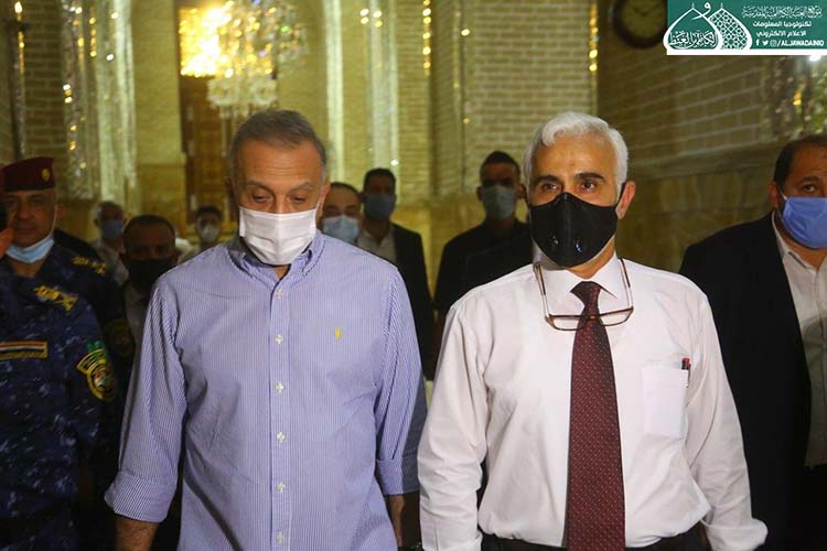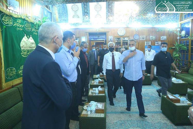 تشرّف بزيارة الإمامين الهمامين موسى بن جعفر الكاظم ومحمد بن علي الجواد "عليهما السلام" دولة رئيس مجلس الوزراء الأستاذ مصطفى الكاظمي، وكان في استقباله الأمين العام للعتبة الكاظمية المقدسة الأستاذ الدكتور حيدر حسن الشمّري، وأعضاء مجلس الإدارة الموقّر بكلّ حفاوة وترحيب وتقديم التهاني لمناسبة عيد الأضحى المبارك، وشهد اللقاء تبادل أطراف الحديث عن واقع العتبة المقدسة واستعراض الخطوات العملية للأمانة العامة للعتبة الكاظمية المقدسة على المستويين الخدمي والعمراني، فضلاً عن الإشارة إلى بعض الجوانب التي تسعى لها جاهدة في الارتقاء بمستوى الخدمة، كما وتم مناقشة الإجراءات الصحية الوقائية الواجب اتباعها حيث شددت العتبة الكاظمية المقدسة اجراءاتها الصحية الوقائية منذ المرحلة الاولى لتفشي فايروس كورونا واكدت على ضرورة تشديد تلك الاجراءات ووجوب التزام المواطنين بتعليمات وزارة الصحة حفاظاً على صحة وسلامة المواطن والمجتمع.