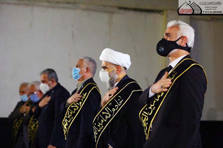 الزمن يمرُّ والسنوات تتعاقب وذكر سبط النبوة الإمام الحسين "عليه السلام" يزداد رفعة وعلواً .. إنها الكرامة الكبرى التي خصّ بها الله تعالى الإمام الحسين وأهله وأصحابه "عليه السلام" وها نحن اليوم نجدد العهد مع قرب حلول ذكرى استشهادهم لتعتلي رايات الحزن والسواد وإعلان الحِداد في مدينة الكاظمية المقدسة، وبغداد وفي عراق الأنبياء والأوصياء، عراق الأئمة النُجباء لنعُلنَ عن انتصار راية الحقّ على الباطل وانتصار الدمِ على السيف وانتصار المظلومِ على الظالِمِ، إذ شهدت العتبة الكاظمية المقدسة المراسم السنوية لاستبدال رايتي القبتين المباركتين للإمامين الكاظمين الجوادين "عليهما السلام" برايتي الحزن والأسى السوداوتين والتي تتزامن مع رفعها فوق قباب العتبات المقدسة العلوية والحسينية، والعسكرية والعباسية، بحضور الأمين العام للعتبة الكاظمية المقدسة الأستاذ الدكتور حيدر حسن الشمّري، وأعضاء مجلس الإدارة وعدد من خدّام الإمامين الكاظمين الجوادين "عليهما السلام"، وممثل المرجعية الدينية العُليا في مدينية الكاظمية المقدسة سماحة الشيخ حُسين آل ياسين، وقد تعذّر توجيه دعوات المشاركة في هذه المراسم السنوية وعقد التجمعات والفعاليات الجماهيرية نظراً للظروف الصحية التي تمرّ بها البلاد، وامتثالاً لتوصيات المرجعية الدينية العُليا متمثلة بسماحة آية الله العظمى السيد علي الحسيني السيستاني "دام ظله الوارف" ودعوته في اتخاذ الإجراءات الصحية الوقائية والحفاظ على صحة الزائرين وسلامتهم فضلاً عن توجيهات وزارة الصحة والبيئة واقتصر البرنامج على عدد محدود مع مراعاة التباعد الوقائي الصحي.
