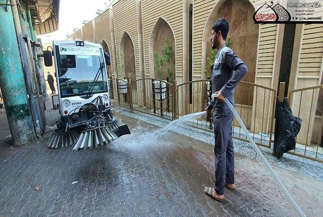 ما زال دم الإمام الحسين "عليه السلام" الطاهر بركاناً يتفجر وما زالت قضيته تشغل القلوب والأذهان حيّة طرية وجرح لا يندمل كأنها حدث بالأمس القريب، وبعد انتهاء المراسم العزائية التي شهدتها مدينة الكاظمية المقدسة، وجّه الأمين العام للعتبة الكاظمية المقدسة الأستاذ الدكتور حيدر حسن الشمّري شعبة النظافة/ وحدة الجهد البلدي بقيام حملة تنظيف وإدامة واسعة استنفرت العجلات الخدمية والحوضية المخصصة لهذه الأعمال حيث تم غسل وتنظيف الطرق والشوارع المجاورة لصحن الإمامين الكاظمين الجوادين "عليهما السلام"، ورفع أكداس النفايات بمشاركة الملاكات الخدمية في قسم الآليات، بعد الانتهاء من مراسم زيارة عاشوراء الأليمة وما احتضنته تلك المدينة المقدسة من جموع موالية بعد أدائهم وإحيائهم للشعائر الحسينية.