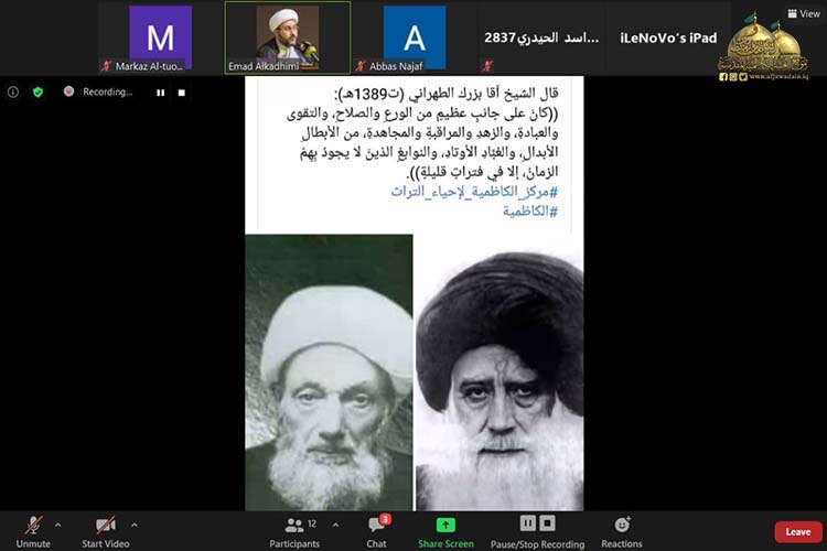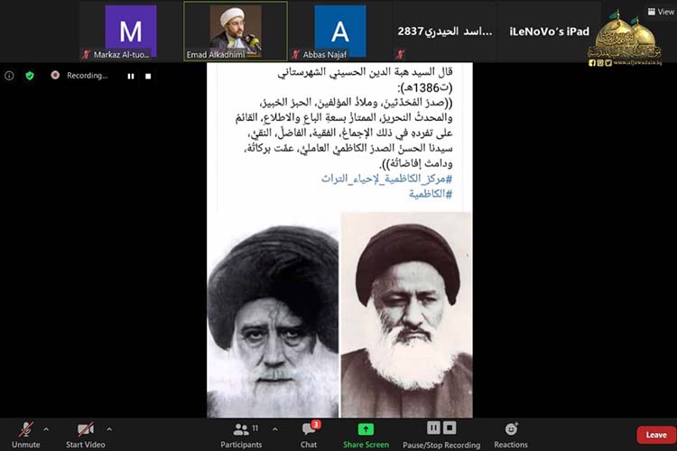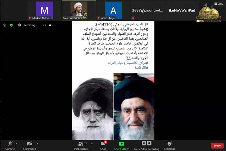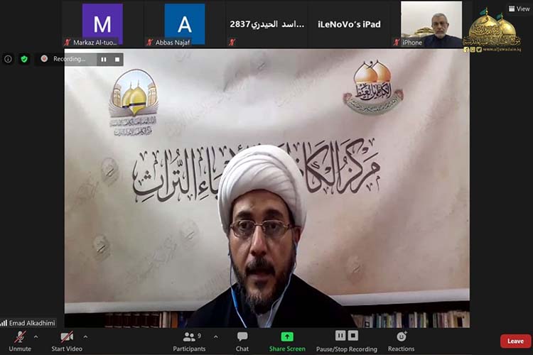 أقامت الأمانة العامة للعتبة الكاظمية المقدسة / مركز الكاظمية لإحياء التراث ندوته العلمية الثانية الافتراضية بعنوان: (دراسة في جهود العلامة السيد حسن الصدر "قدس سره" ) لمناسبة الذكرى السنوية لوفاة فخر الفقهاء والمحدثين آية الله العظمى السيد حسن الصدر "طيب الله ثراه" المتوفى سنة 1254 هـ، وذلك عبر منصة (class room) تطبيقاً لإجراءات الوقاية الصحية، والتزاماً بتوجيهات المرجعية الدينية العُليا، والتعليمات الصادرة من اللجنة العُليا للصحة والسلامة الوطنية لمنع تفشي وباء كورونا.
