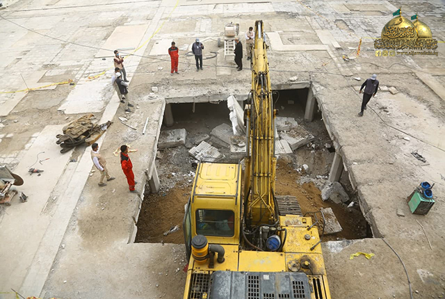 وعن المراحل الأولى للمشروع تحدث لموقع العتبة الكاظمية المقدسة الإلكتروني المهندس محمد صفاء قائلاً: شهد مشروع إعادة تأهيل صحن الإمام الباقر"عليه السلام" في مرحلته الأولى إزالة السقف والأعمدة الخرسانية لأرضية السرداب القديم، وقطع الأسس الخاصة بالسرداب وفصلها عن أسس البناء المحيط به بطرق هندسية احترافية خاصة، ليتم بعد ذلك تدعيم التربة وإسنادها ليتسنى المباشرة بأعمال الحفر وإنشاء السرداب الجديد، حيث سبقت هذه المرحلة إعداد التصاميم الإنشائية والمعمارية للمشروع، وإجراء عمليات تحريات التربة وفحصها في مختبرات تخصصية معتمدة.