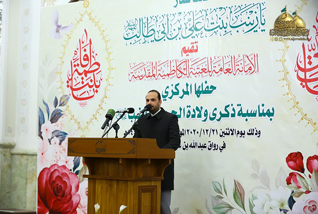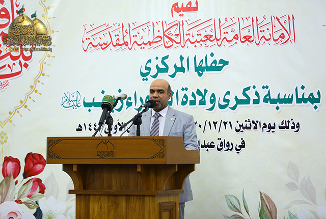 إحياءً لذكرى ولادة عقيلة بني هاشم السيدة زينب بنت أمير المؤمنين علي بن أبي طالب "عليهما السلام" التي ضربت لنا أروع الأمثلة في العفة والحشمة والوقار حتى أصبحت نبراساً لكل امرأة مسلمة ترنو بطرفها نحو الكمال وتوطن نفسها على الامتثال لتعاليم الله وسنة نبيه "صلّى الله عليه وآله وسلم"، تلك الولادة العطرة التي ملأت سماء الإسلام بالفرح والسرور والغبطة، أقامت الأمانة العامة للعتبة الكاظمية المقدسة حفلاً بهذه المناسبة المباركة في رحاب الصحن الكاظمي الشريف، بحضور نائب أمينها العام المهندس سعد محمد حسن، وأعضاء مجلس الإدارة الموقّر،وعدد من الشخصيات الدينية والاجتماعية.