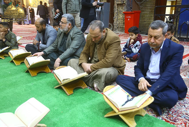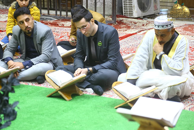 وشهد المحفل باقة من التلاوات القرآنية المباركة، ليَعلو صداها، ويُنثر شذاها في فضاء المزار الشريف، والتزوّد ببركات الذكر الحكيم، ونيل الثواب والأجر العظيم في بيت من بيوت الله، وباب من أبواب قضاء الحوائج.