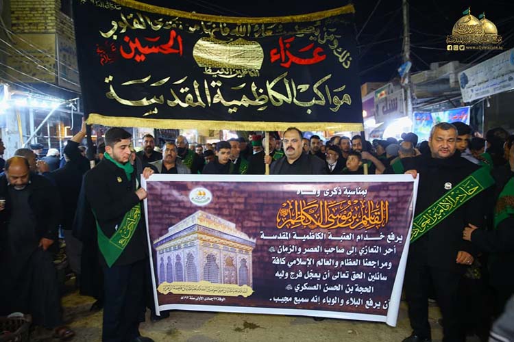 بتوجيه من قبل الأمين العام للعتبة الكاظمية المقدسة الأستاذ الدكتور حيدر حسن الشمّري، وانطلاقاً من قول إمامنا جعفر الصادق "عليه السلام" : (أحيوا أمرنا رحم الله من أحيا أمرنا)، ومواساة للرسول الأكرم وأهل بيته الأطهار "عليهم السلام"، شارك خدام الإمامين الكاظمين الجوادين "عليهما السلام" مواكب مدينة الكاظمية المقدسة والجموع الموالية في إحياء ذكرى وفاة سيدنا القاسم ابن الإمام موسى بن جعفر الكاظم "عليهما السلام"، وشملت تقديم الخدمات وتوفير مستلزمات الضيافة لزائري المقام الشريف الذين توافدوا لإحياء هذه المناسبة الأليمة، حاملين شعار التشرف بالخدمة في كل مكان يذكر فيه اسم أهل بيت النبوة "عليهم السلام"، فضلاً عن المشاركة في المسيرة العزائية التي انطلقت من قضاء القاسم "عليه السلام" متجهة صوب المرقد الطاهر، حيث صدحت حناجرهم الجموع بالردات الرثائية، والأبيات الولائية لتختتم بمجلس في المرقد الشريف، مستذكرين بهذه المناسبة الأليمة المآثر والعِبر العظيمة لسيدنا القاسم "عليه السلام" الممتدة لشخص آبائه وأجداده الطاهرين الذين ملؤوا الدنيا بفضائلهم ومناقبهم المباركة، ومتخذين من هذه السيرة العطرة منهجاً لتهذيب سلوكيات مجتمعنا الإنساني.