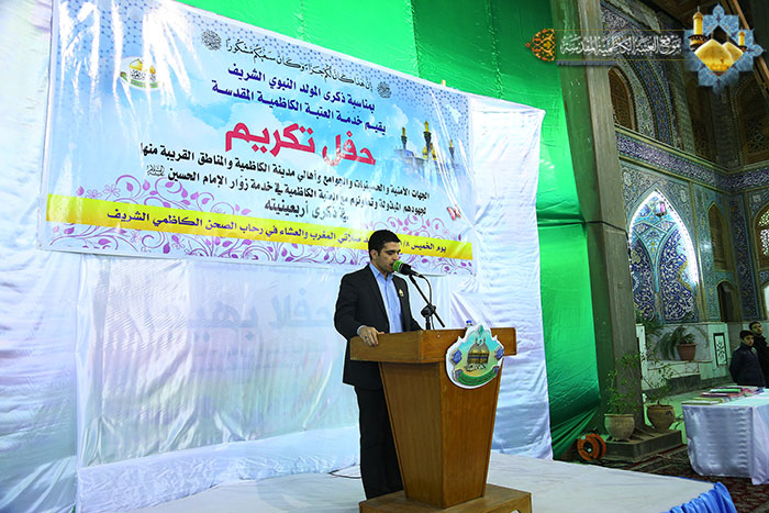 تزامناً مع الذكرى العطرة لمولد الرسول الأكرم "صلى الله عليه وآله" وحفيده وناشر علومه الإمام جعفر الصادق "عليه السلام"، أقامت الأمانة العامة للعتبة الكاظمية المقدسة مساء يوم الخميس 8/1/2015م حفلاً مباركاً لتكريم الجهات الأمنية والحسينات والجوامع وأهالي مدينة الكاظمية والمناطق القريبة منها، احتفاءً بجهودهم المباركة ودورهم الفاعل وتعاونهم مع الأمانة العامة للعتبة الكاظمية المقدسة لنيل شرف خدمة زائري الإمامين الكاظمين "عليهما السلام"، وذلك من خلال فتح بيوتهم ومنازلهم لإيواء جموع الوافدين من داخل العراق وخارجه وتقديم الخدمات المتميزة لهم أثناء الزيارة المليونية لأربعينية الإمام الحسين "عليه السلام"، بحضور الأمين العام للعتبة الكاظمية المقدسة أ. د "جمال الدباغ" وأعضاء مجلس الإدارة وعدد من الشخصيات الدينية والسياسية والاجتماعية وشيوخ ووجهاء وفضلاء مدينة الكاظمية المقدسة. استهل الحفل بتلاوة معطرة من الذكر الحكيم للقارئ الحاج "همام عدنان " تلتها كلمة الأمانة العامة للعتبة الكاظمية المقدسة والقاها أمينها العام أ . د "جمال الدباغ " بيّن فيها قائلاً: " إنَّ هذهِ الأعدادَ الكبيرةَ من الزائرينَ لمرقدِ الإمامِ الحسينِ "عليه السلام" والمراقدِ المقدسةِ الأُخرى، تتطلبُ جهوداً كبيرةً جداً لتلائِمَ الخدماتِ الجليلةَ التي ينبغي أنْ تُقَدَّمَ للزائرين، فقد وفَّقَكُمُ اللهُ تعالى لخدمةِ مَنْ تتشرَّفُ الملائكَةُ بخدمتِهم، فقدَّمْتُم من الخدماتِ الجليلةِ في هذا العام، أثناءَ زيارةِ الأربعينِ ما تَقُرُّ به العينُ أمامَ النبيِّ "صلى الله عليه وآله وسلم" والأئمةِ "عليهم السلام"، فآثرتُمْ بأنفسِكُم وأموالِكُم وجاهِكُم وغيرِ ذلكَ في سبيلِ تعظيمِ شعائرِ اللهِ تعالى، وكما تعاهَدْنا معكُمْ في العامِ الماضي من خلالِ حفلِنا السنوي على التعاضُدِ والتماسُكِ من أجلِ خدمةِ الزائرينَ الوافدينَ إلى مدينتِنا المقدسة، ولا يفوتُني ذِكْرَ ما قَدَّمَتْهُ المؤسساتُ الأمنيةُ لحمايةِ أولئكَ الزائرين، وما قدَّمَهُ إخوتُنا المجاهدونَ في الحشدِ الشعبي، فكانوا عيوناً ساهرةً تحافظُ على ديمومَةِ الزيارةِ لأكثرَ من أسبوعين، وكذلكَ المؤسساتُ الخدميةُ وغيرُها، فَبِاسْمِ جميعِ خَدَمَةِ العتبةِ الكاظميةِ المقدسةِ أتقدَّمُ لكم بأحَرِّ التهاني والتبريكاتِ لتوفيقِكُمْ لهذهِ الخدمةِ العظيمة .." بعدها القى شاعر أهل البيت السيد "نبيل أبو العيس" قصيدة بهذه المناسبة ومنها هذه الأبيات: أهلاً بأهلِ الكاظميةِ مَرحبا في جنةِ الفردَوسِ للأطهارِ هاكُم بطاقاتِ التَحايا وقِعتْ بيراعِ موسى سابعِ الأنوارِ جِدْتُم بها مَلكَت يديكُم كُنتُمُ كجوادِ آلِ المصطفى الأبرارِ وفَتَحتُمُ بُوبَ البيوتِ بغبِطة حتى بيوتِ اللهَ للـــــــزوارِ وخَدمتُمُ زوارَ سبطِ محمدٍ حتى بَلغتُمْ قمــــــةَ الإيثارِ واختتم الحفل بتوزيع الشهادات التقديرية والتبرك بالضيافة في مضيف الإمامين الجوادين "عليهما السلام".