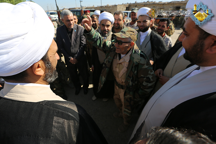 زارت لجنة الحشد الشعبي في العتبة الكاظمية المقدسة القطعات العسكرية لمجاهدي الحشد الشعبي في منطقة الضابطية شمال شرق ناحية الكرمة التابعة لقضاء الفلوجة ومناطق حزام بغداد برفقة وكيل المرجع الديني الأعلى سماحة آية الله العظمى السيدعلي الحسيني السيستناني في مدينة الكاظمية المقدسة سماحة الشيخ حسين آل ياسين ومجموعة من السادة والمشايخ الأجلاء في الحوزة العلمية الشريفة، واطلعوا خلال الزيارة على وضع المقاتلين الأبطال وتمكنهم من الانتشار وتمركزهم وحكم السيطرة ومسك الأرض المحررة، كما اطلعوا على سير عمليات التحرير والتقدم الذي يحققه الحشد الشعبي، وبسط الأمن في تلك المناطق بعد تحريرها من براثن الإرهاب التكفيري وإيقاع الهزيمة والخسائر الفادحة في صفوفه. من جانبه أكد سماحة الشيخ آل ياسين على الالتزام بتطبيق فتوى المرجعية الدينية العليا، والتصدي للهجمة الشرسة والأكاذيب المضللة التي يفتعلها أعداء الله والأنسانية والتي هدفها النيل من الانتصارات والتضحيات التي حققها أبناء الحشد الشعبي الغيارى. وفي ختام الزيارة توجه الوفد بالدعاء للمجاهدين في سبيل الدين وأن يثبت الله أقدامهم وينصرهم على أعداء الدين نصراً عزيزاً مقتدراً إنه سميع مجيب.
